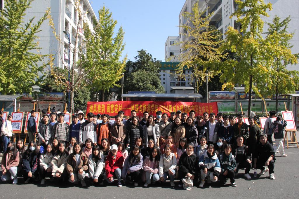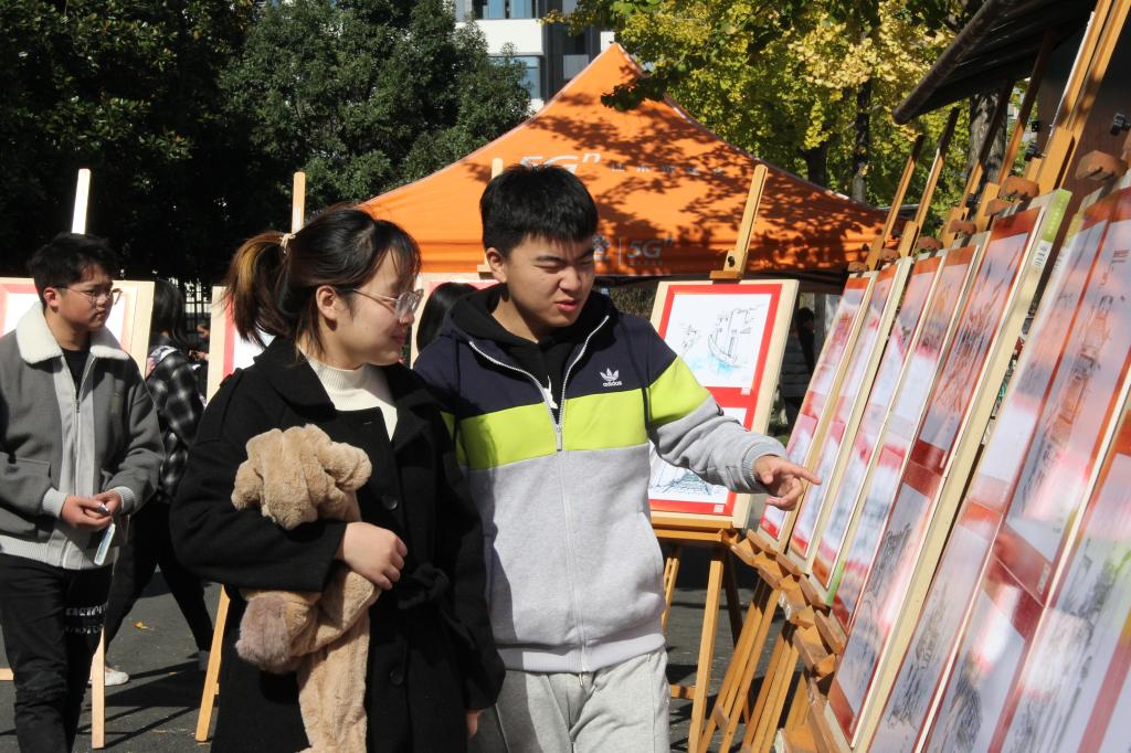 2020级城乡规划专业在二食堂门口举办“微风雅韵 画意宏村”皖南写生成果展。院党委书记贾冠忠、副院长曹卫东、专业指导老师黄秋实、金莹莹以及学院辅导员在班级同学的陪同下参观并指导了画展,学校各年级专业的学生前来观摩。