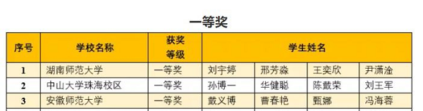 等28支代表队获一等奖,淮阴师范学院等44支代表队获二等奖,安徽农业大学等45支代表队获优胜奖。