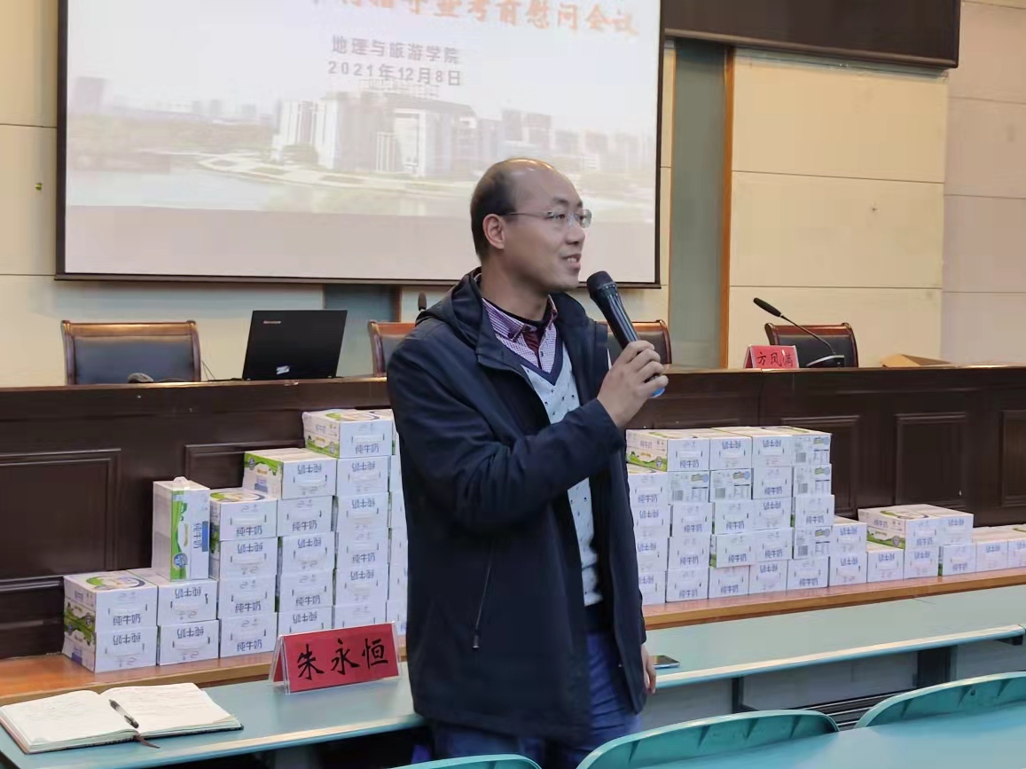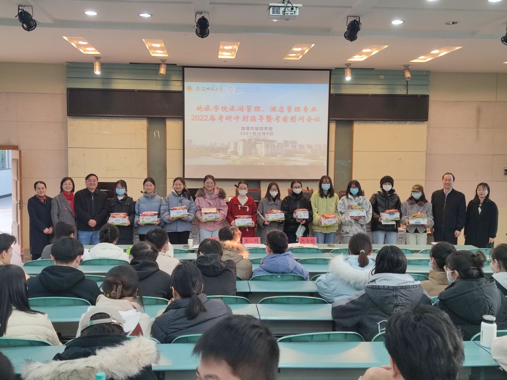 会议伊始,各专业辅导员介绍本专业本届考研学生基本情况。院领导出席各专业分会场慰问会,并作动员讲话。院党委书记贾冠忠出席地理科学专业分会场,他提醒考研学子要调整作息,稳住心态,保持身心健康,以积极良好的心态应对考试。院长苏勤出席旅游管理、酒店管理专业慰问会,他鼓励同学们调整心态,积极应考,注重身体;认真分析往年的试卷真题,了解学科热点问题、把握学科前沿,以“青春是用来奋斗的”激励考研学子坚持不懈,预祝同学们取得好成绩。