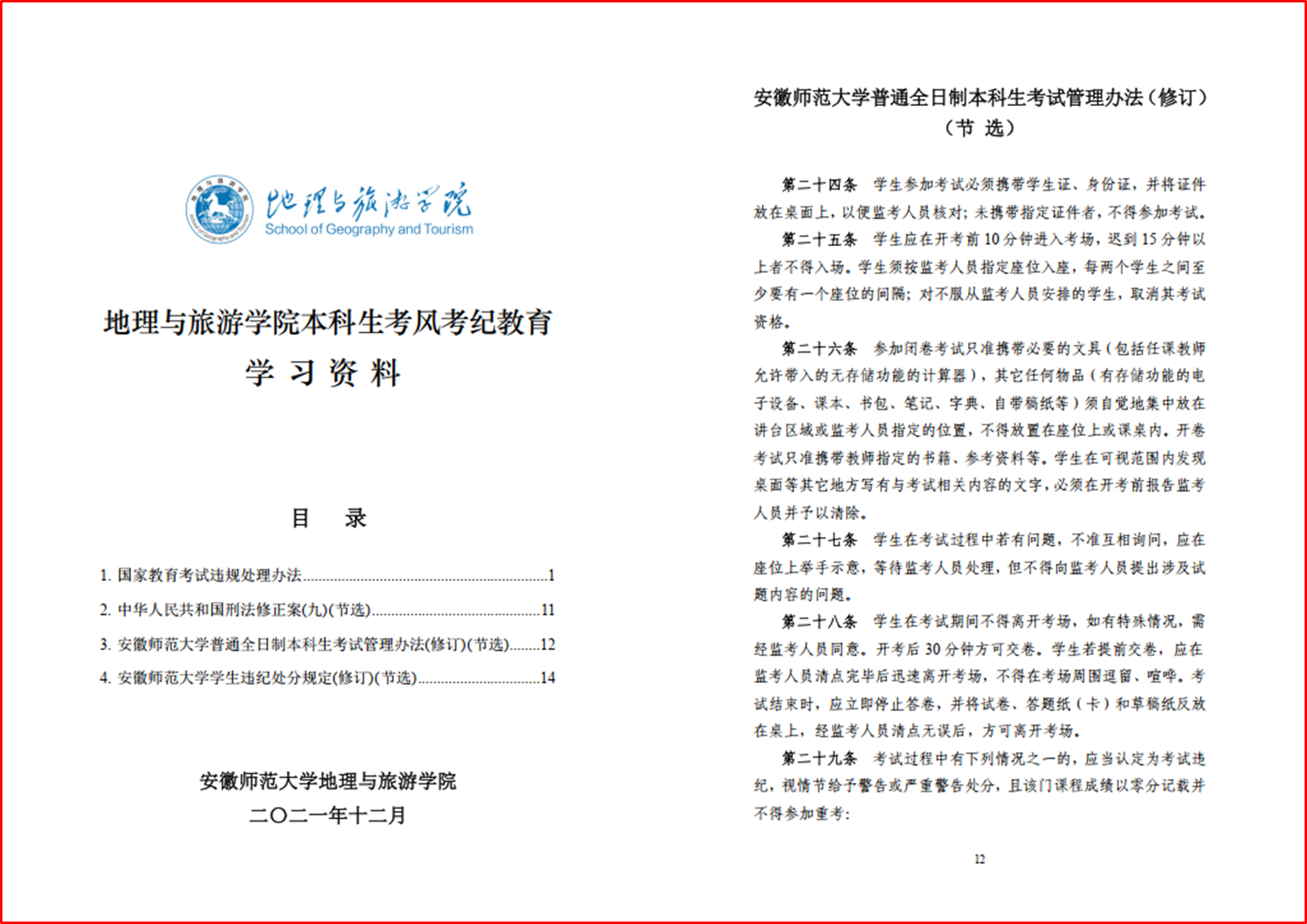 编订学习资料,提升学生诚信考试认识。进一步提高学生对考风考纪相关法律法规的认识和了解,学院编辑整理国家教育考试违规处理办法、国产精品