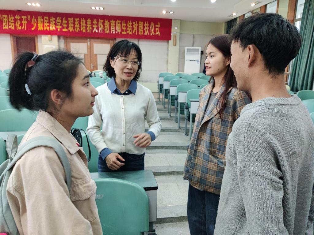 学院全面了解掌握少数民族学生家庭经济状况,关心少数民族学生日常生活,建立少数民族学生经济资助保障体系,对家庭经济困难、地处偏远的少数民族学生开放“绿色通道”补贴,为少数民族学生正常学习生活保驾护航;建立健全符合少数民族学生实际的心理健康教育预防机制,关注少数民族学生心理健康,建立完善少数民族学生成长档案,关注特殊学生;开展师生“午餐会”,少数民族学生座谈会,了解学生日常生活动态;在野外实习中,为少数民族学生准备爱心午餐;积极鼓励少数民族学生参加学生社团、校园文化活动,承担勤工助学岗位,提升其融入度与归属感。通过举行庆佳节“团结花开”联欢晚会、“团结花开”民族班趣味运动会等文体活动,以及开展 “家乡的节日”主题调查等寒暑假期“三下乡”“返家乡”社会实践活动,关心少数民族学生日常生活,增强他们对民族文化底蕴的感知与认同,树立民族团结意识。端午节,院长苏勤、院党委副书记乔静等领导和辅导员们慰问了部分联系帮扶的少数民族学生,与同学们一起共度中华民族传统佳节,并以屈原为例讲述中华民族生生不息的伟大爱国主义精神。冬至节气,学院组织同学们在一起包饺子、迎冬至,让同学们感受传统文化的独特魅力。