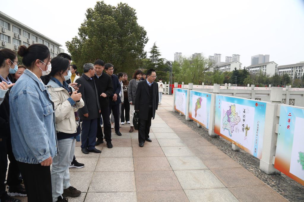 、德育研究会负责同志来到学校九曲桥旁,现场参观手绘地图获奖作品展览。40余幅作品迎着阳光一字排开,线条勾勒严谨,色彩丰富,绘制细致精美,既有省内的芜湖、六安等城市,也有省外的温州以及香港特别行政区等。现场,获奖学生代表向胡朝荣介绍了各自绘制作品的内容和初衷。胡朝荣边走边看,不时驻足仔细观察,在认真听取作品介绍后,胡朝荣对同学们绘制的地图给予了高度肯定。他指出,国产精品
