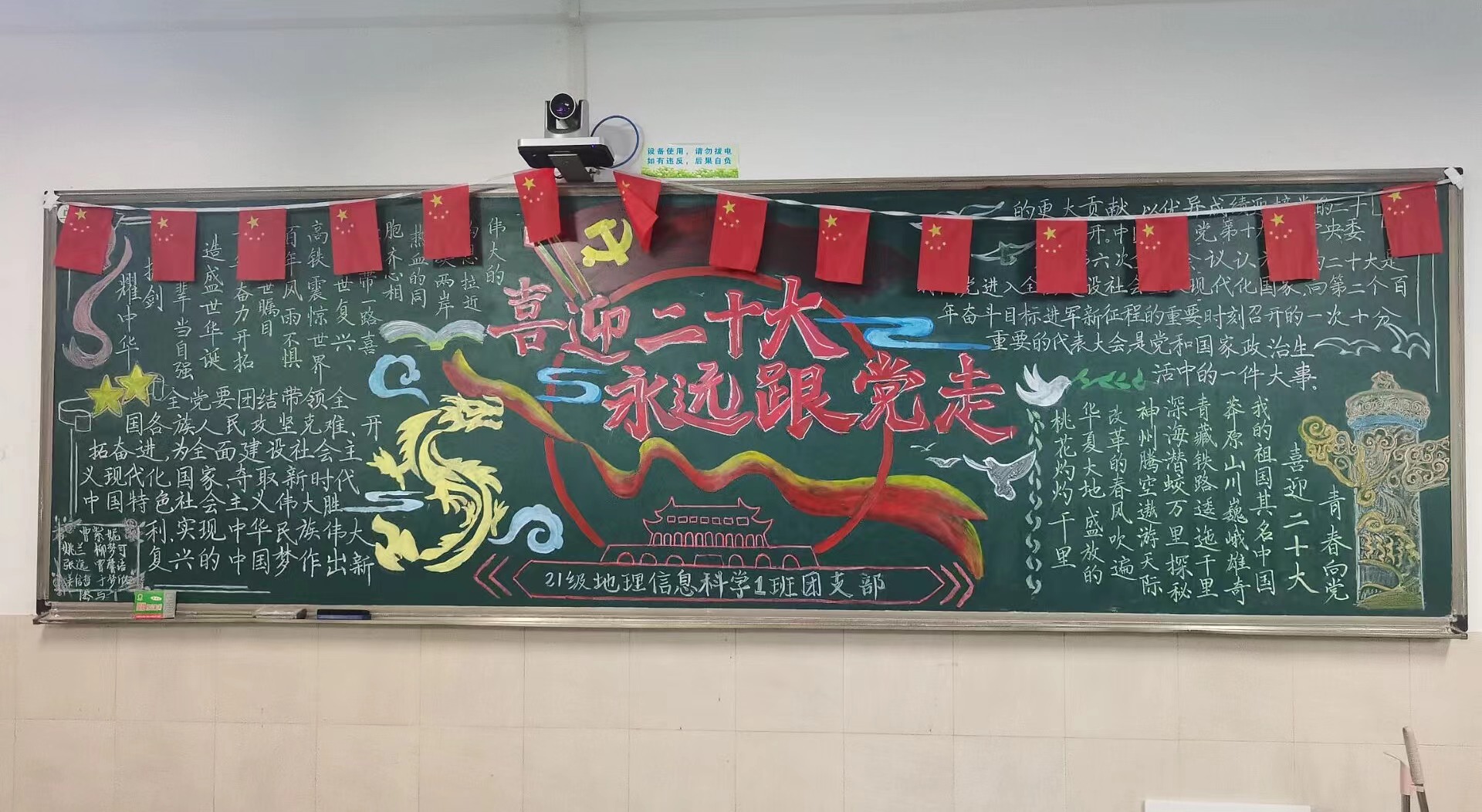 假期期间,学院团委积极响应学校号召,广泛动员各年级团支部参与黑板报设计与绘制以“喜迎二十大 永远跟党走 奋进新征程”为主题的“最美黑板报”评选活动。各团支部紧紧围绕主题,坚持团结鼓劲、正面宣传,唱响主旋律,壮大正能量,用昂扬向上、团结奋进的文字与美观大方、色彩斑斓图画构建一幅幅创意板报。一块块黑板报,促进和发挥了校园文化的美育功能,积极营造了喜迎党的二十大的浓厚氛围,引导广大青年学习用青春唱响“强国复兴有我”的时代强音。