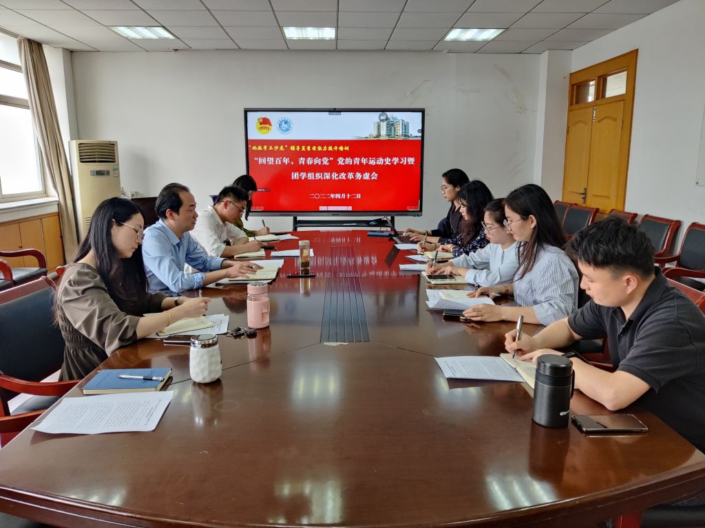 在学院行政楼四楼会议室举行“回望百年,青春向党”党的青年运动史学习暨团学组织深化改革务虚会,学院党委副书记乔静、团委书记陈祥云、全体专兼职辅导员参加会议。会议由乔静主持。
