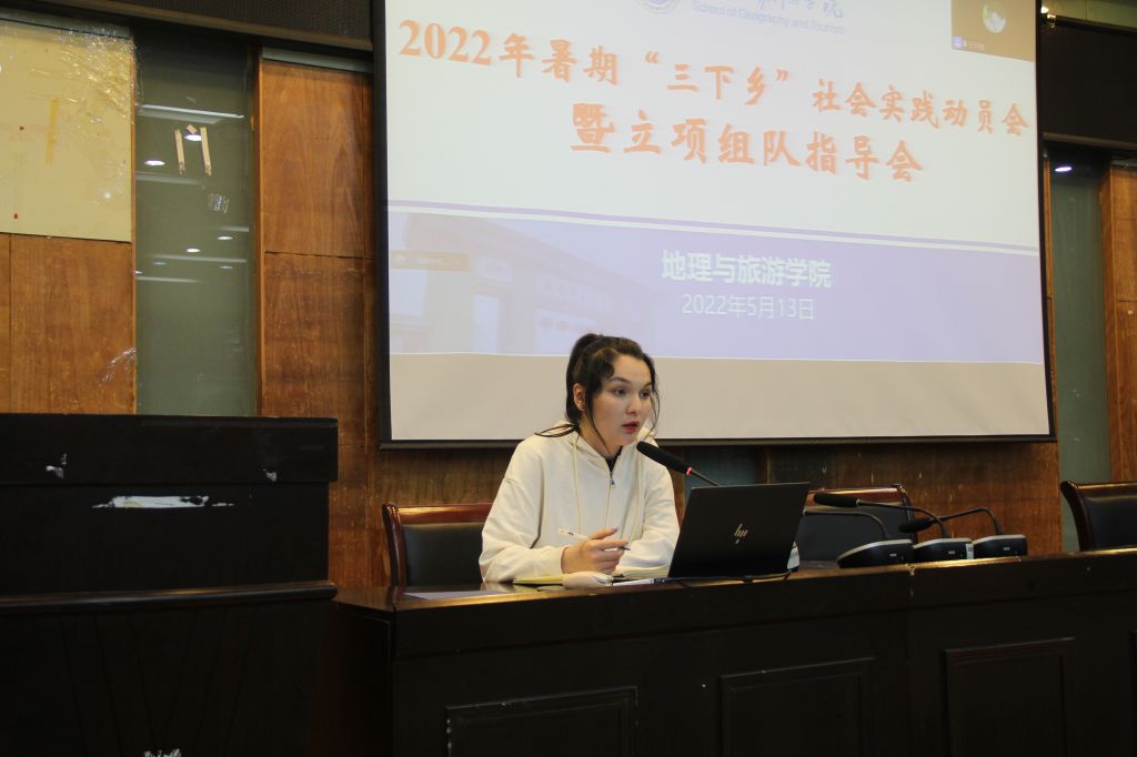 在院实验楼101报告厅举行2022年暑期“三下乡”社会实践动员会暨立项组队指导会。2020级、2021级本科生及研究生各班级班长、团支书,有意向组建暑期社会实践团队的负责人等参加线下会议,各班级学生代表通过腾讯会议平台线上参会。安徽省2021年暑期社会实践优秀调研报告一等奖团队负责人、2019级旅游管理专业董婷,“情系川皖·圆梦巴蜀”山区留守儿童支教团队负责人、2020级地理科学(师范)专业苏热叶受邀参会。会议由国产精品