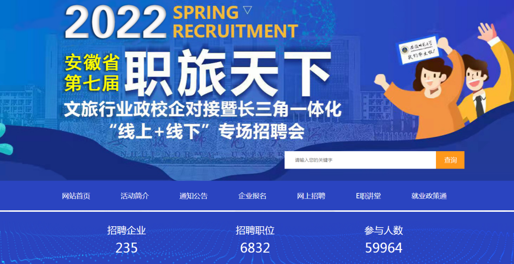为适应疫情防控常态化管理,学院采取“早启动、早部署、早动员、早实施”的工作方法,以生为本,改革创新,积极搭建“职旅天下”“职海扬帆”线上就业服务网站平台,组织在线宣讲和空中求职讲堂,整合各类资源,为毕业生提供全面优质的就业资讯与切实有效的指导服务。截至目前,“职旅天下”“职海扬帆”线上就业服务网站平台共有353个招聘单位,提供8220个招聘岗位,吸引75158人次毕业生浏览网站求职就业。此外,自3月17日起,学院组织开展“职旅天下”春季空中双选会7场次。邀请三只松鼠、南京国图等共计30余家用人单位“云端”参与双选会,共提供岗位563个,424人次毕业生投递简历、求职应聘。5月下旬,学院扎实推进与含山县战略合作,积极争取含山县文旅局来校带编招聘,含山县委组织部、人社局、编办等单位负责人来校现场办公,面向我校旅游管理等专业开展“一站式”专场校招,切实拓宽优质就业渠道。