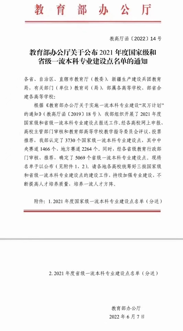 日前,《教育部办公厅关于公布2021年度国家级和省级一流本科专业建设点名单的通知》印发,国产精品
