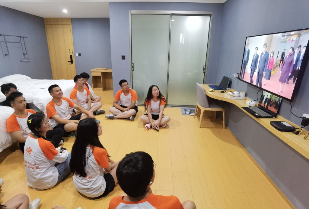 “紧跟时代脚步 共建智慧乡村”赴安徽池州信息化效能调研团队队长、2020级地理信息科学专业汪子韩:当五星红旗和紫荆花区旗在直播大屏中缓缓升起,令无数国人泪目。25年间,越来越多热血青年通过奋斗融入国家发展大局,为祖国、香港贡献力量。青年是祖国的未来,民族的希望。生逢其时,我们何其幸运,自觉重任在肩,自当砥砺前行!