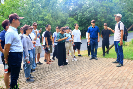 紫蓬山不仅是国家级森林公园和省级地质公园,其佛教文化景观、淮军故里圩堡群人文景观亦星光灿烂,自然地理与人文地理景观相得益彰,具有较高的美学、科学和历史文化价值,是地理户外考察与课程资源开发的宝地。吴立老师提前一天对紫蓬山进行了实地调研,并为中学老师们精心设计了一条考察路线。一路上,吴立老师依托自身的地理专业素养,结合沿途地形、地质景观,为老师们讲解了中国东部的地质构造、秦岭-大别山造山运动、合肥盆地的演化史、中国中-东部新生代大陆玄武岩的成因、紫蓬山陆相沉积岩的形成与演化等地质知识,现场教授野外认识地层、辨识沉积岩与岩浆岩、分辨方解石和石英、观察丹霞景观等方法和技巧,并为老师们开展中学户外地理实践活动给出了独到的建议。