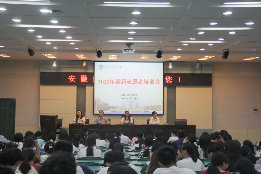 于学院实验楼101教室召开了2022年迎新志愿者培训会。辅导员韦银艳、吴文涵和新生辅导员操晶晶、谢园以及200多名志愿者们参加会议。会上,韦银艳从志愿服务精神、安全纪律、工作态度和文明礼仪四个方面明确了志愿者的工作任务与要求。随后新生辅导员依次发言,着重强调了志愿者要以良好的精神面貌树立好榜样,给新生留下师大及国产精品