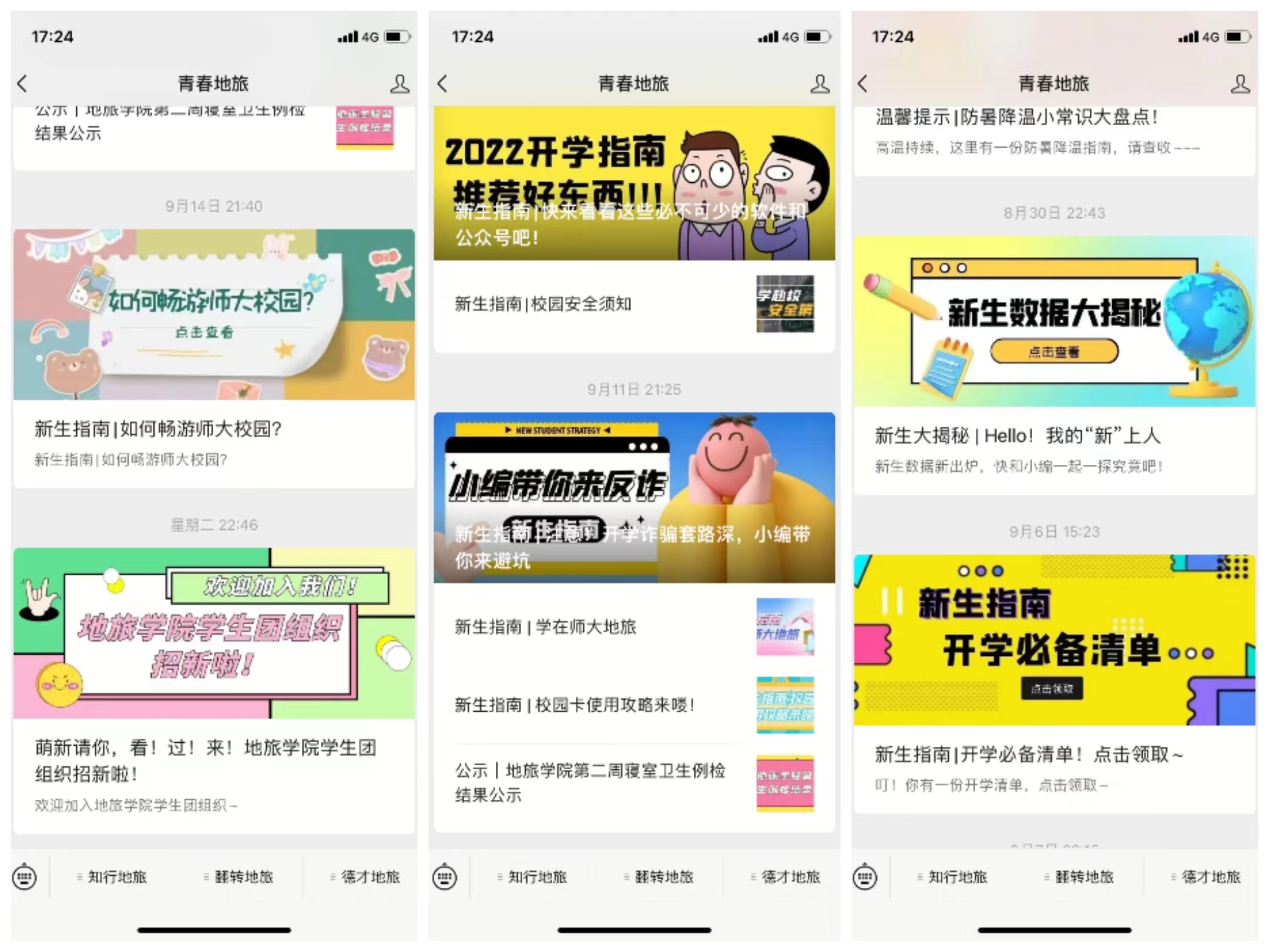 为使2022级新生更快了解专业特色,学院精心设计,为新生准备了线上线下“新生大礼包”。“线下大礼包”其中包含学院定制LOGO及院训的入学纪念帆布袋,装有口罩、酒精消毒湿巾、免洗手消毒凝胶、定制红色便携包的防疫包、城乡规划专业特色手绘师大风景明信片、导师推荐阅读书目和新生寄语的定制书签一套、学院学生工作风采;“线上大礼包”则是通过青春地旅微信公众号推送,涵盖“入学须知”、“防疫知识”“校园卡使用”、“防电信诈骗”等内容丰富的新生“电子大礼包”。