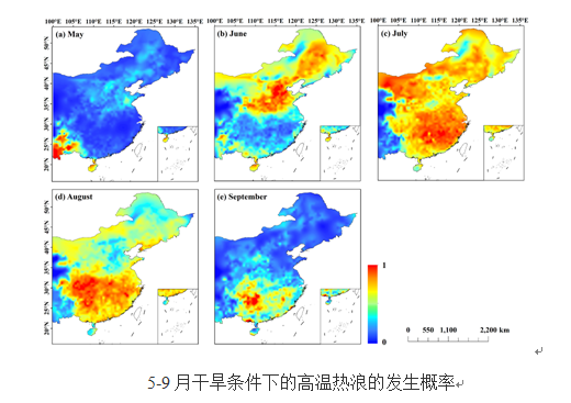 研究成果2:中国东部地区高温热浪的频率、持续时间和强度以及复合干旱热浪事件的频率显著增加,高温热浪主要出现在长江中下游和四川盆地。复合干旱热浪事件持续时间和强度比一般高温热浪长0.28天,高11.14℃,体现了干旱对于高温热浪严重程度的促进作用。该研究成果揭示了干旱引发和放大高温热浪的机制,为未来自然灾害风险评估提供重要依据。本文第一作者为我校2020级硕士研究生卞耀劲,论文通讯作者为孙鹏教授。该研究合作者包括2020级研究生刘瑞琳、北京师范大学张强教授和中山大学罗明教授。本文为多校联合研究成果,该研究得到国家自然科学基金重大项目(42041006)、国家重点研发计划项目(2019YFA0606900)、安徽省自然科学基金优青项目(2108085Y13)、安徽省重点研发计划项目(2022m07020011)、安徽省协同创新计划项目(GXXT-2021-048)共同资助。