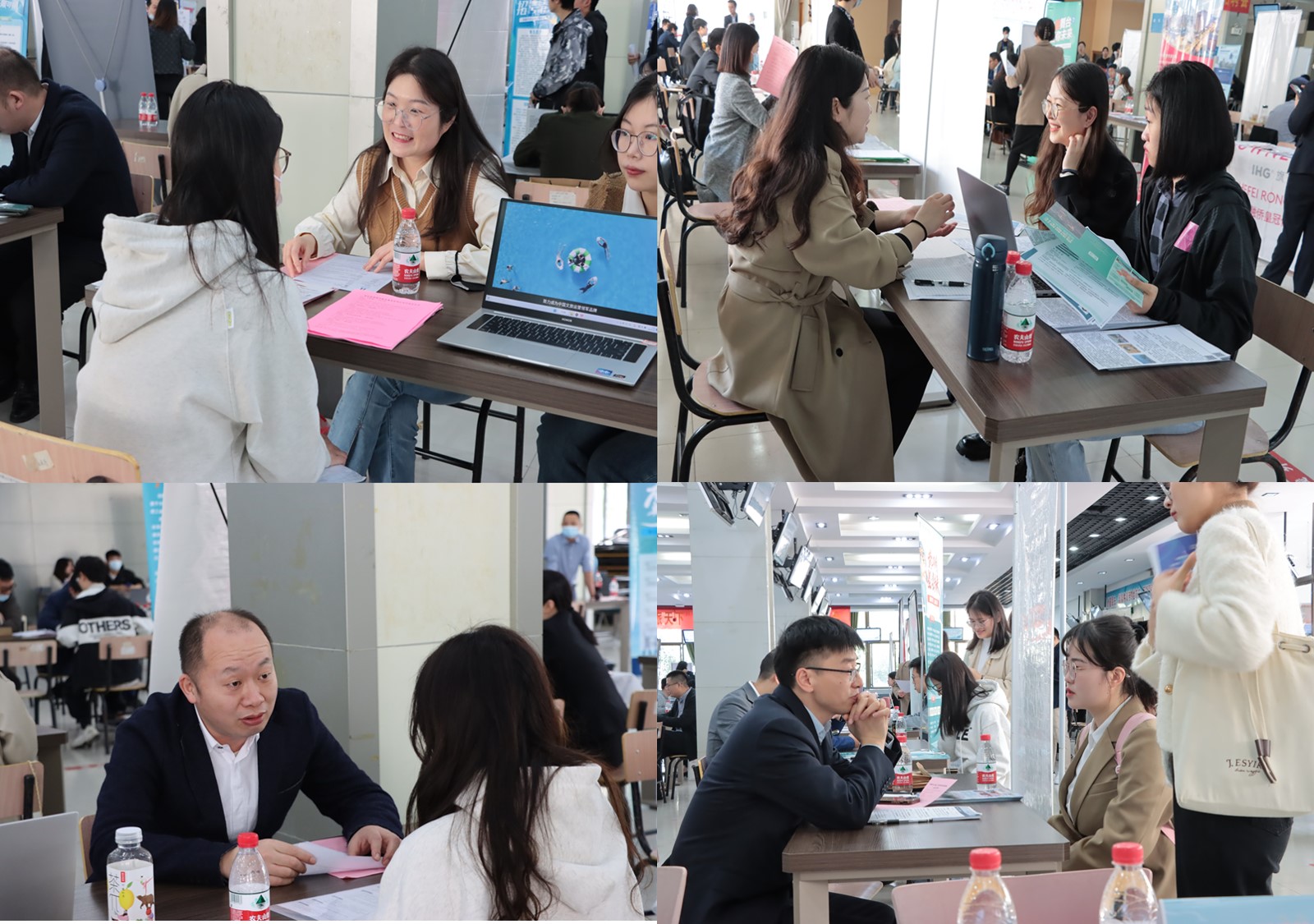 党政领导班子成员和专业负责人深入招聘现场与招聘单位负责人交流洽谈。非毕业班师生代表积极参加招聘活动,提前感受招聘形势氛围,主动联系招聘单位,全力推进访企拓岗促就业。