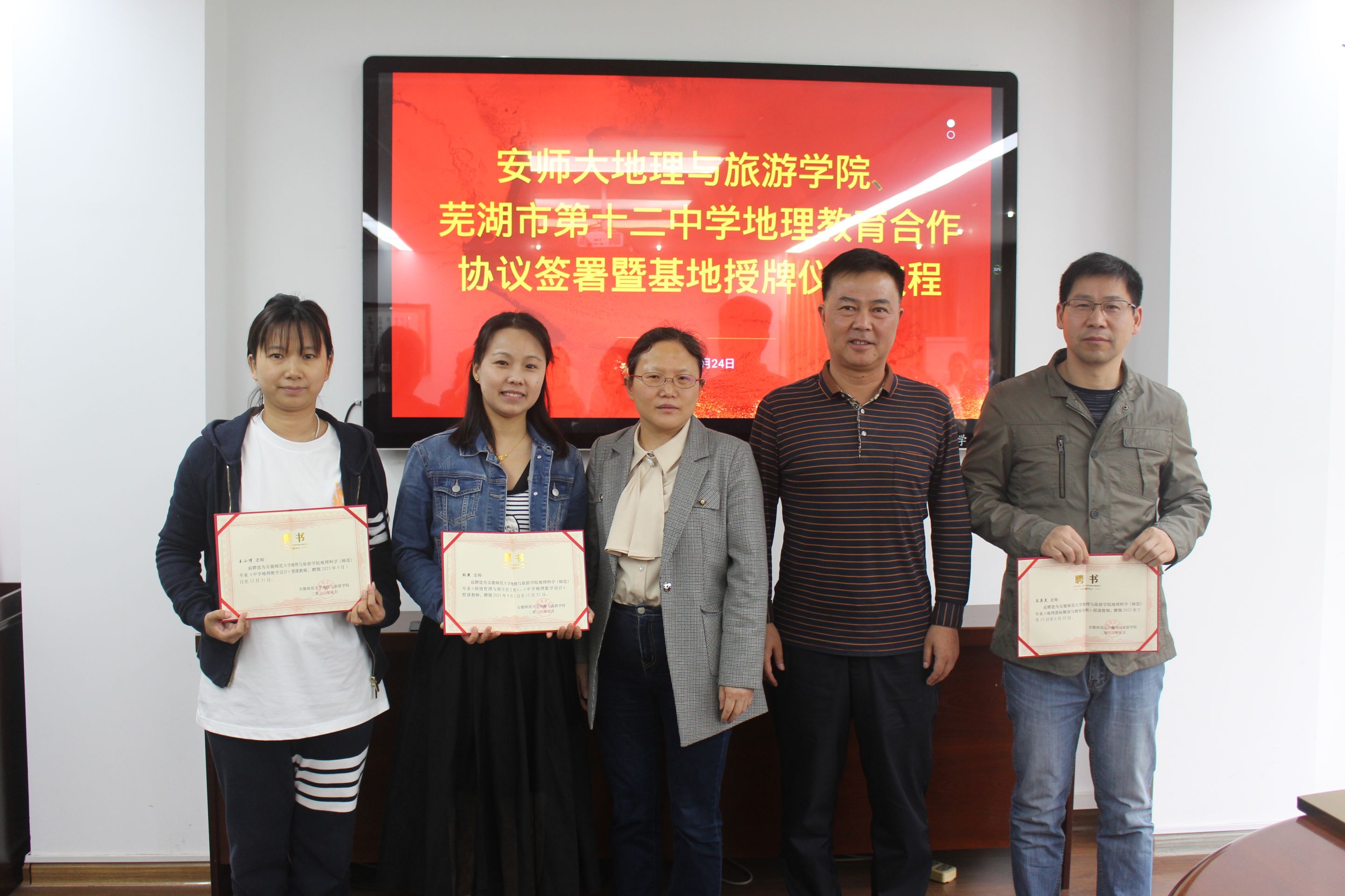 院长方凤满教授、副院长杨兴柱教授、地理科学专业负责人朱永恒教授、徐仪红教授、辅导员操晶晶一行赴芜湖市第十二中学就共建地理学科师范生实习实训示范基地、加强师范生培养等事项进行交流探讨,并举行实习实训示范基地授牌仪式。芜湖市第十二中学校长查海曼、副校长唐棣、教务处副主任刘峰、地理教研组组长张燕、教师马其虎、王小倩等出席,仪式由刘峰主持。