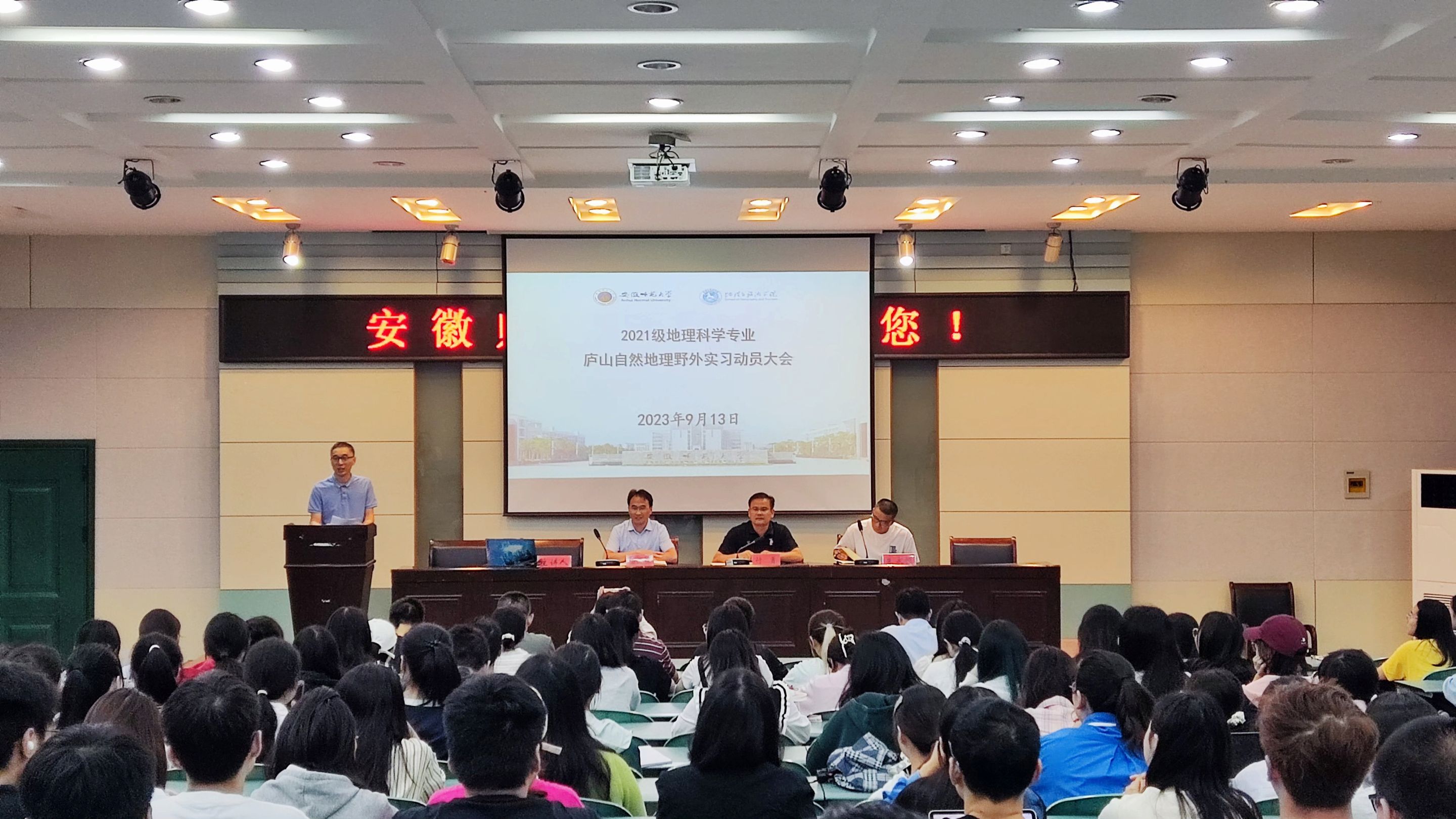 9月13日下午,21级地理科学(师范)专业在学院实验楼101报告厅召开庐山自然地理野外实习动员大会,学院党委副书记付勇、副院长杨兴柱、地理科学专业负责人朱永恒、实习指导老师以及21级地理科学(师范)专业全体学生参会,会议由实习负责人胡春生主持。