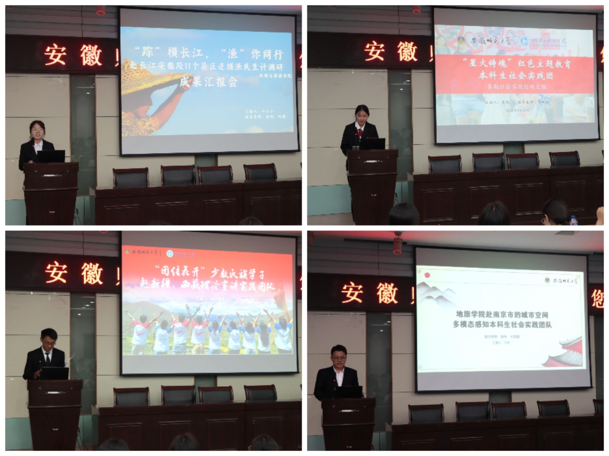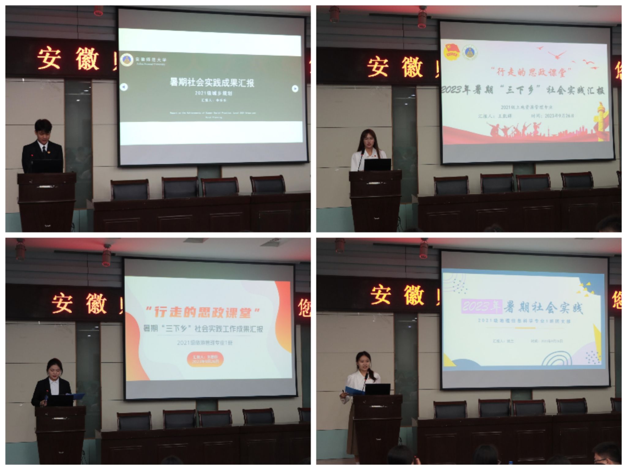 在院实验楼101教室举办2023年大学生暑假“三下乡”社会实践专题评比汇报会。学院党委副书记付勇,地理科学专业教师徐仪红、旅游管理专业教师阮陵、土地资源管理专业教师吴九兴、地理信息科学专业教师徐培培、城乡规划专业教师黄秋实,院团委书记韦银艳,院团委副书记吴文涵以及辅导员操晶晶、谢园担任评委,各团队负责人、各年级团支部代表参加会议。会议由徐瑾主持。