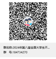 3、加入赛事联络QQ群。所有入围决赛的小组成员,请于2024年7月20日前,加入赛事联络QQ群(QQ群号:184734270),加入QQ群时请按“学校+学院+姓名”格式备注验证信息。后续报到时,现场加入决赛微信群。