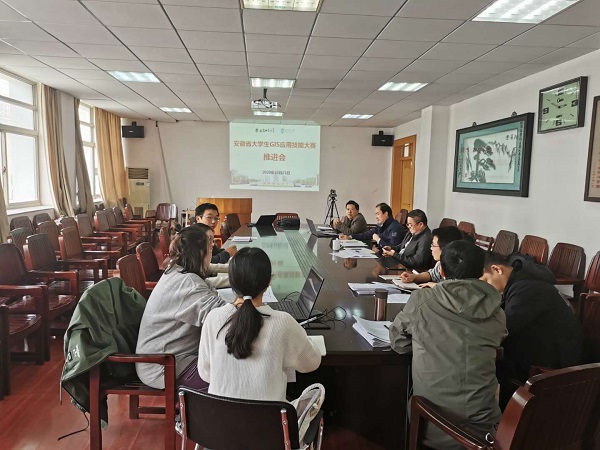 10月21日下午,国产精品 行政楼三楼会议室召开2020年安徽省大学生GIS应用技能大赛工作组会议,院长苏勤、副院长曹卫东、副书记乔静、地信专业负责人及骨干教师、团委书记等人参加会议。