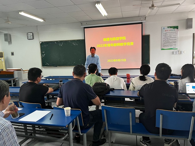 在院实验楼202教室举行了青年教师教学竞赛。全院共有10名青年教师参加比赛,邀请黄时中、焦华富、程久苗、吕成文等不同学科的专家担任评委,比赛由教学院长杨兴柱主持。