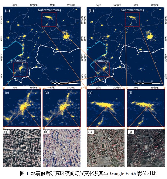 及时有效地开展地震灾后损失和重建评估,对部署调整灾区重建规划具有重要的指导价值。夜光遥感技术依靠自身灯光信息,可以有效地监测灾区灯光强度变化,为及时了解地震灾害损失与灾后重建评估提供第一手资料。论文以2023年土叙地震为例,借助Black Marble SNPP-VIIRS产品VNP46A2的每日灯光数据(图1),系统开展土叙地震灾害损失与重建评估(图2),为今后同类型灾害损失与灾后重建评估提供一种新的视角与方法。