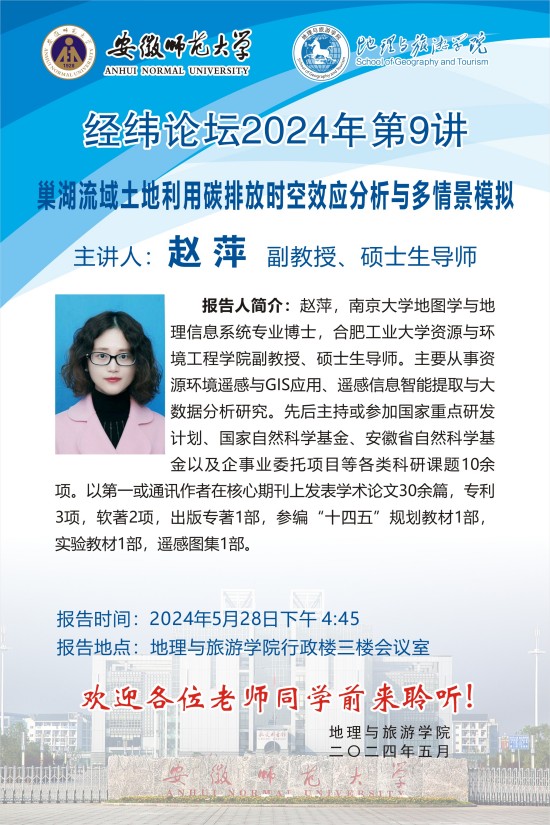 【学术预告】经纬论坛第41讲:巢湖流域土地利用碳排放时空效应分析与多情景模拟