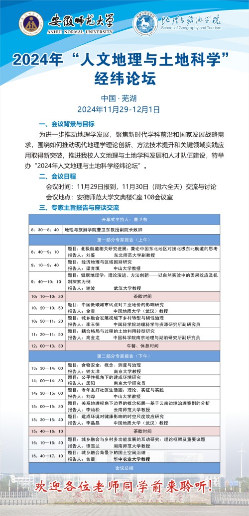 【学术预告】2024年“人文地理与土地科学”经纬论坛