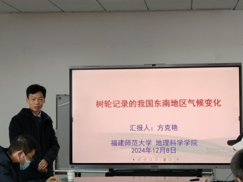 讲学,并做了题为《树轮记录的我国东南地区气候变化》的学术报告,报告在学院行政楼三楼会议室举行,学院相关专业的教师、研究生及本科生聆听了此次报告。