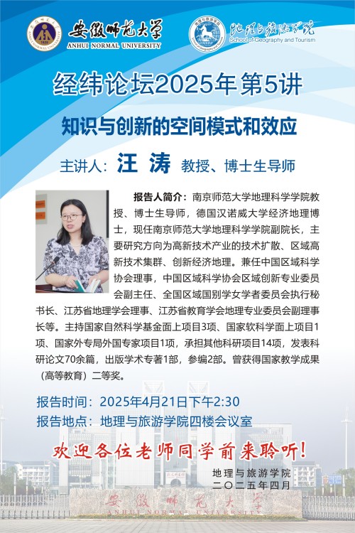【学术预告】经纬论坛第71讲:知识与创新的空间模式和效应