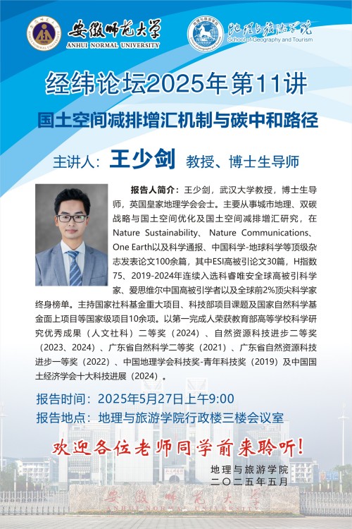 【学术预告】经纬论坛第77讲:国土空间减排增汇机制与碳中和路径
