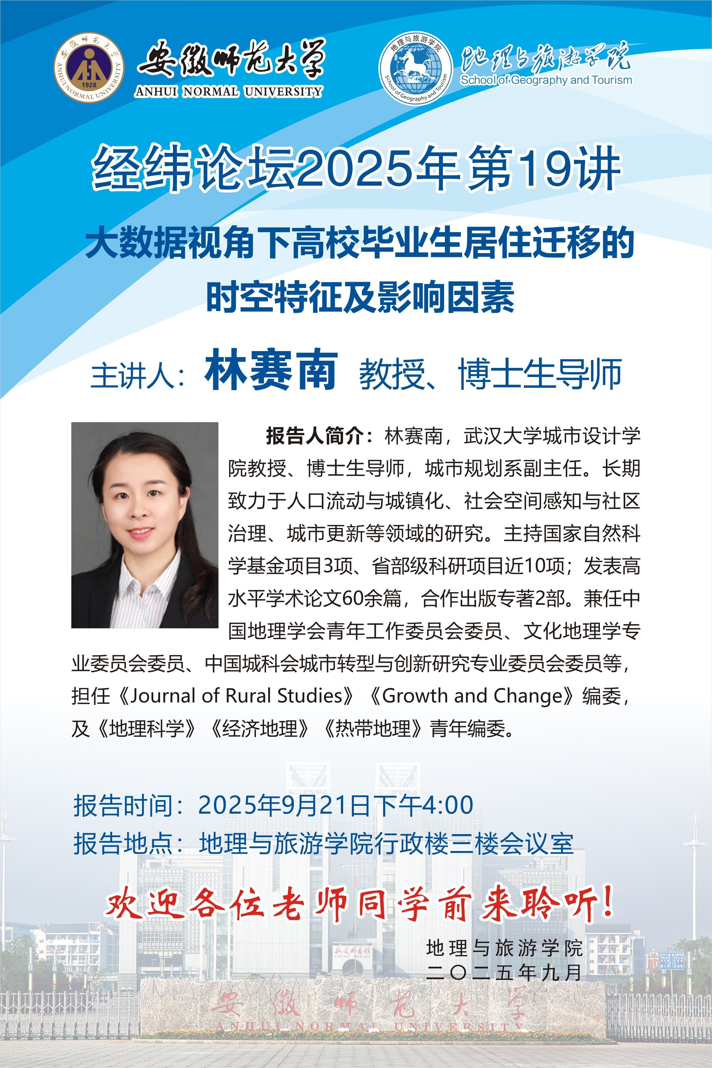 【学术预告】经纬论坛第85讲: 大数据视角下高校毕业生居住迁移的时空特征及影响因素