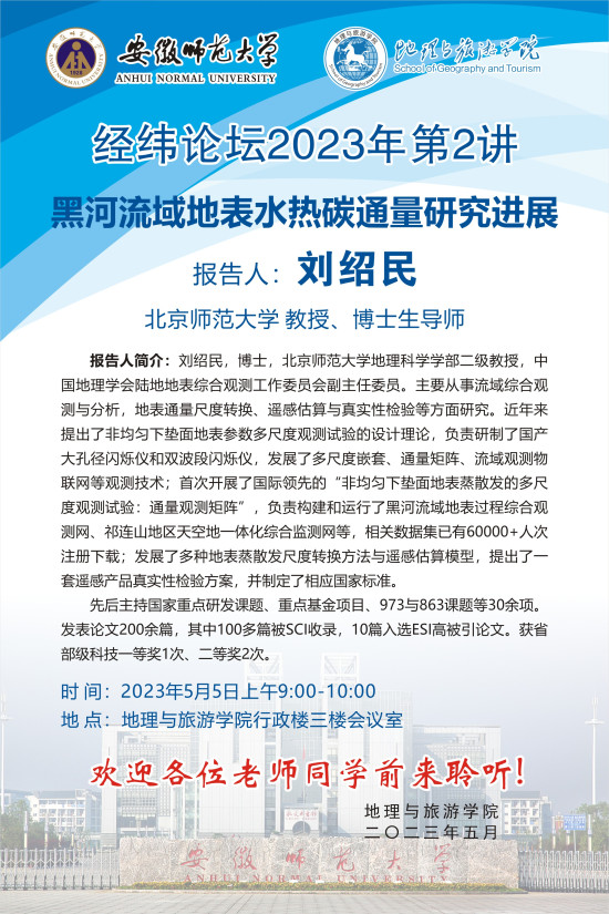 【学术预告·经纬论坛】刘绍民:黑河流域地表水热碳通量研究进展