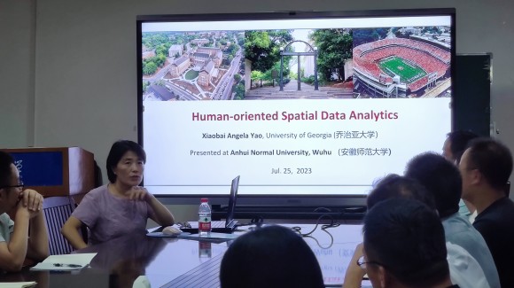 进行学术交流,并做了题为《Human-orient Spatial Data Analytic》的交流座谈报告。交流座谈会在学院行政楼三楼会议室举行,由曹卫东副院长主持,学院相关专业的教师和研究生聆听了此次报告。
