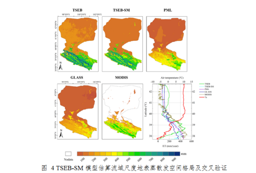 通过对微波遥感土壤水分产品进行空间降尺度,结合卫星地表温度、叶面积指数、大气驱动数据等实现水热耦合双层能量平衡地表蒸散发遥感反演模型流域尺度扩展,并利用站点观测通量数据、拆分植被蒸腾比例数据以及主流遥感产品实现模型的直接和交叉验证。