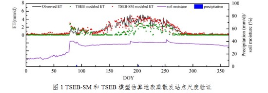 课题组通过理论推导、野外试验和黑河流域水文气象观测网共享数据,开发水热耦合地表蒸散发遥感反演模型。然后,在全球不同气候区9种植被类型下全面验证模型估算地表蒸散发、土壤蒸发和植被蒸腾的精度。最后,利用航空遥感获取的高分辨率土壤水分数据和卫星遥感降尺度土壤水分数据、以及地表温度、叶面积指数和气象参数等实现模型空间尺度扩展。研究结果表明,无论在站点尺度还是流域尺度上,课题组提出的水热耦合地表蒸散发遥感反演模型精度都优于原模型,为今后利用该模型生产全国乃至全球尺度逐日地表蒸散发遥感产品奠定了重要基础。