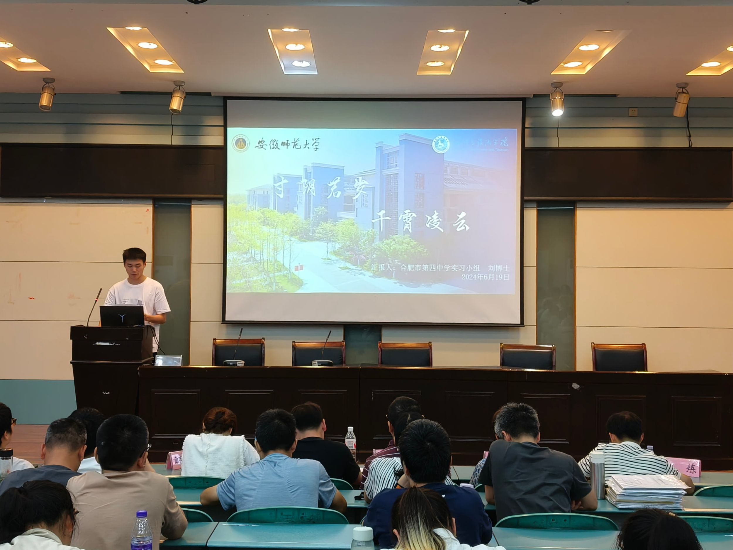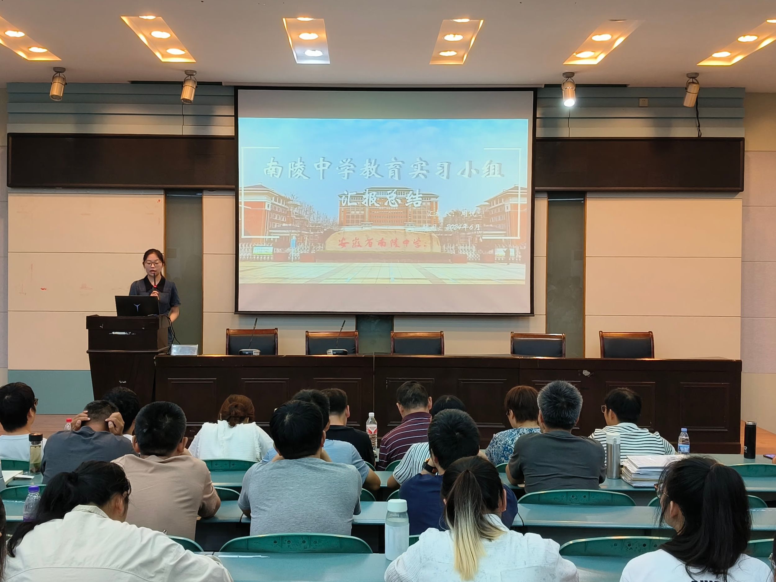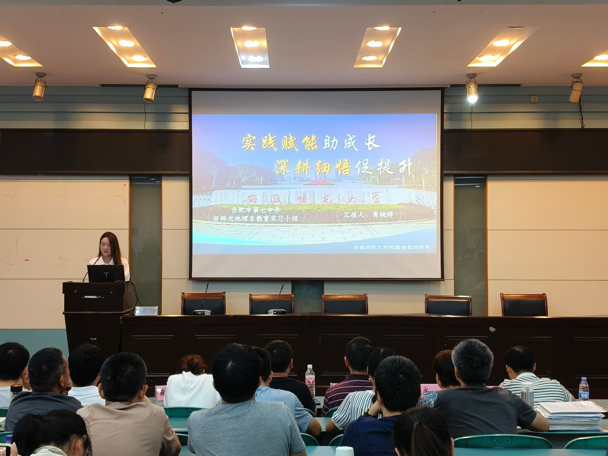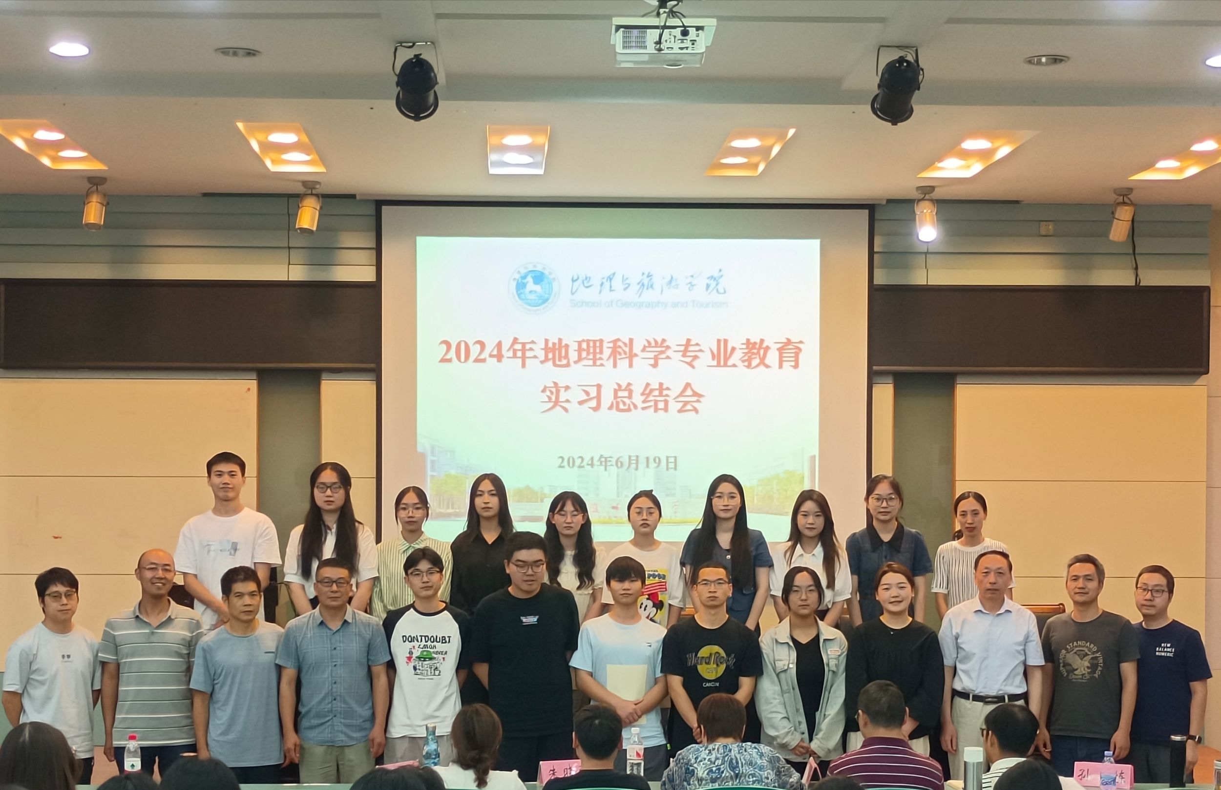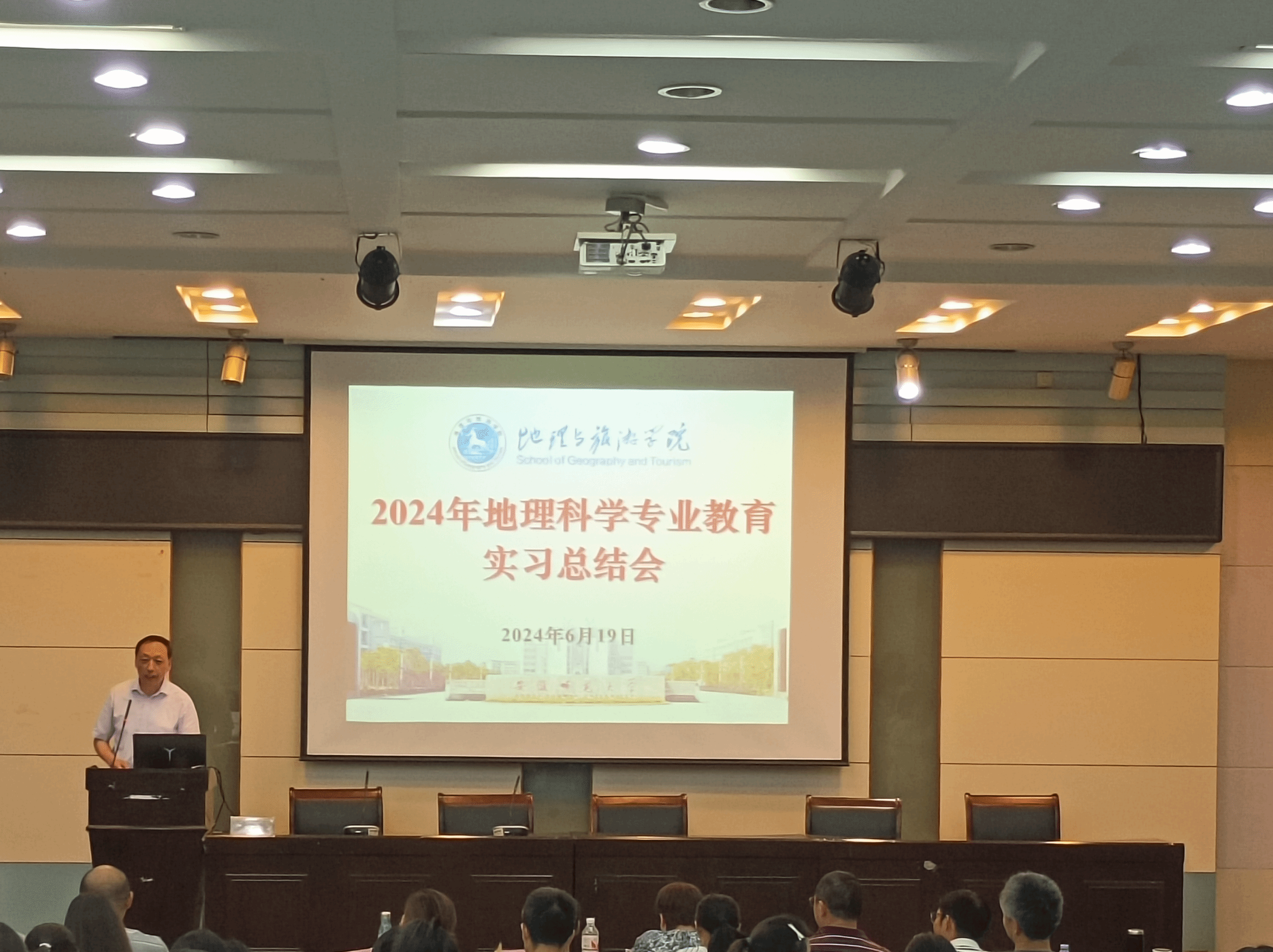 何铵楠 周润)6月19日,2021级地理科学(师范)专业于实验楼101报告厅召开教育实习总结会,地理专业教师孙炼、房莉、刘新圣、朱晓强、郦倩玉受邀担任评审,焦华富、朱永恒、张平究等专业教育实习指导教师、2021级地理科学(师范)专业全体同学参会,报告会由朱雅洁同学主持。