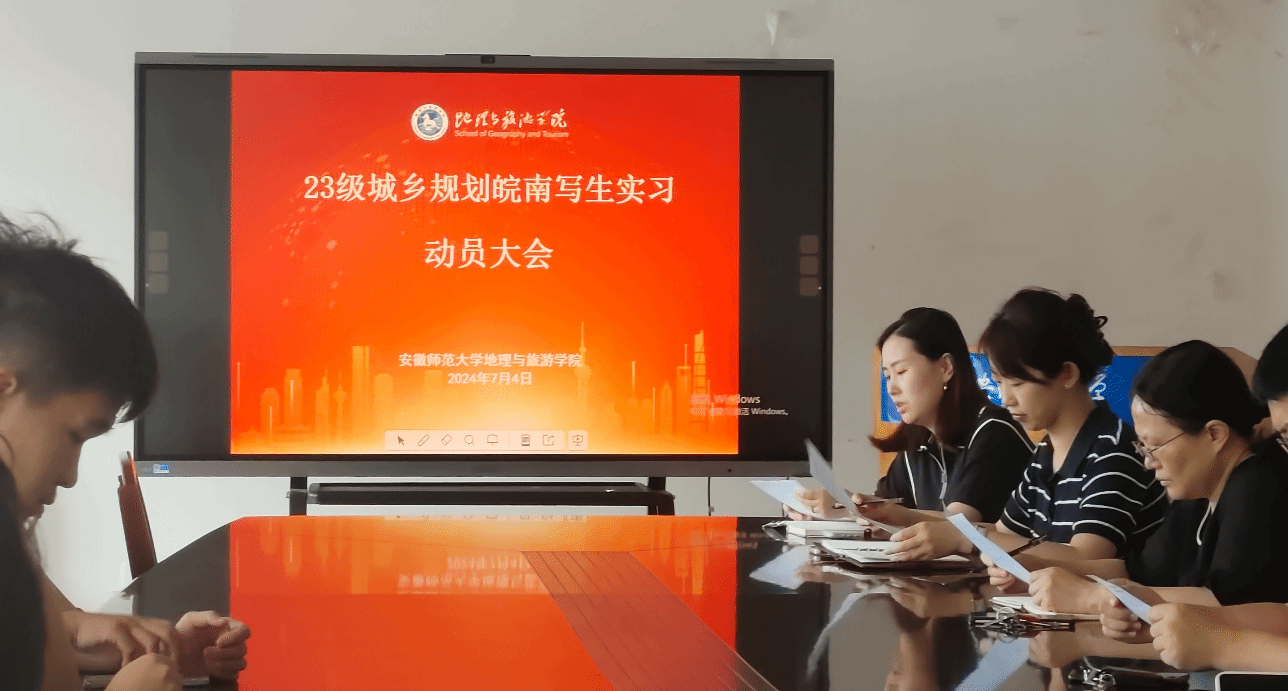 在行政楼3楼会议室召开2023级城乡规划皖南写生实习动员大会,院长方凤满、城乡规划专业负责人韩会然、专业教师李婷君、黄秋实、金莹莹以及2023级城乡规划专业全体同学参会,会议由金莹莹主持。