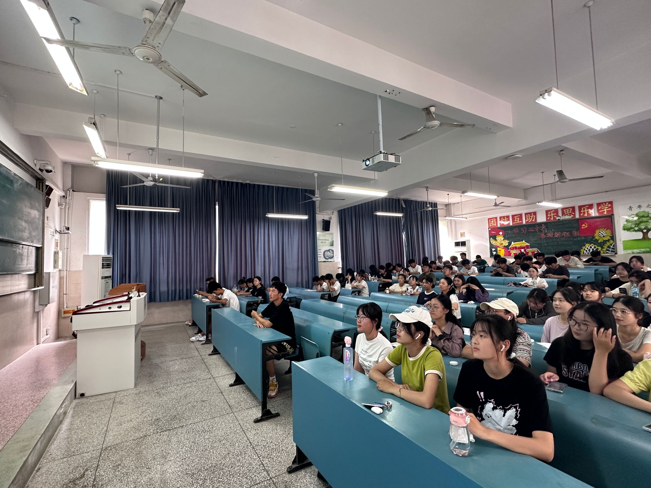 组织2024级新生在行知楼集中学习主题为“新起点,新征程,遇见更好的自己”的专题教育,本次讲座由麻金继教授主持。作为军训结束后大一新生的第一场讲座,其承上启下,在对军训精神总结的基础上,帮助新生了解大学,熟悉大学,正式开启大学生活。