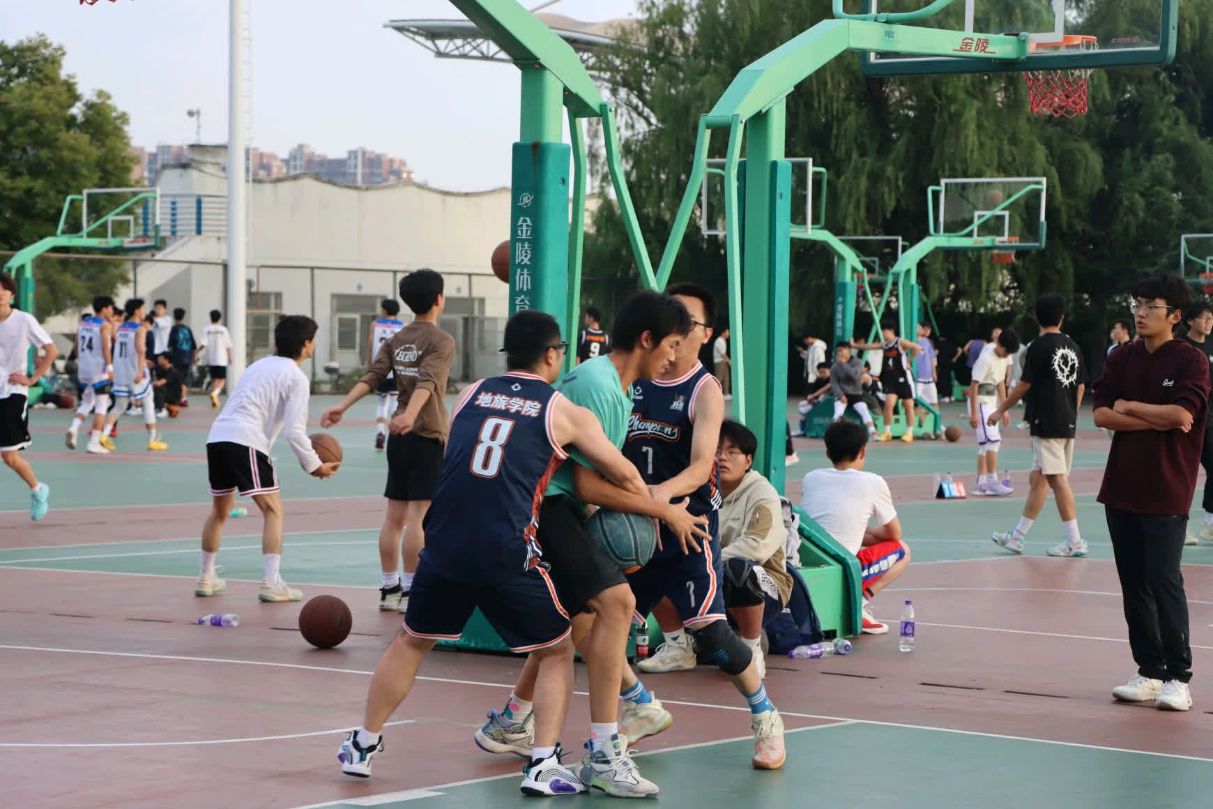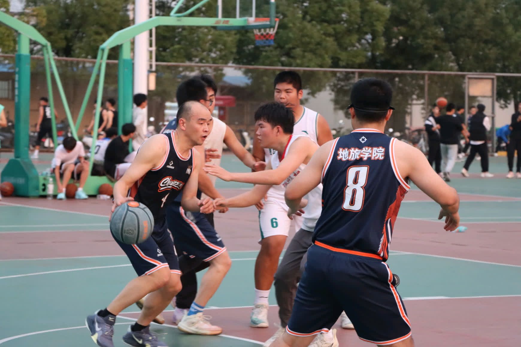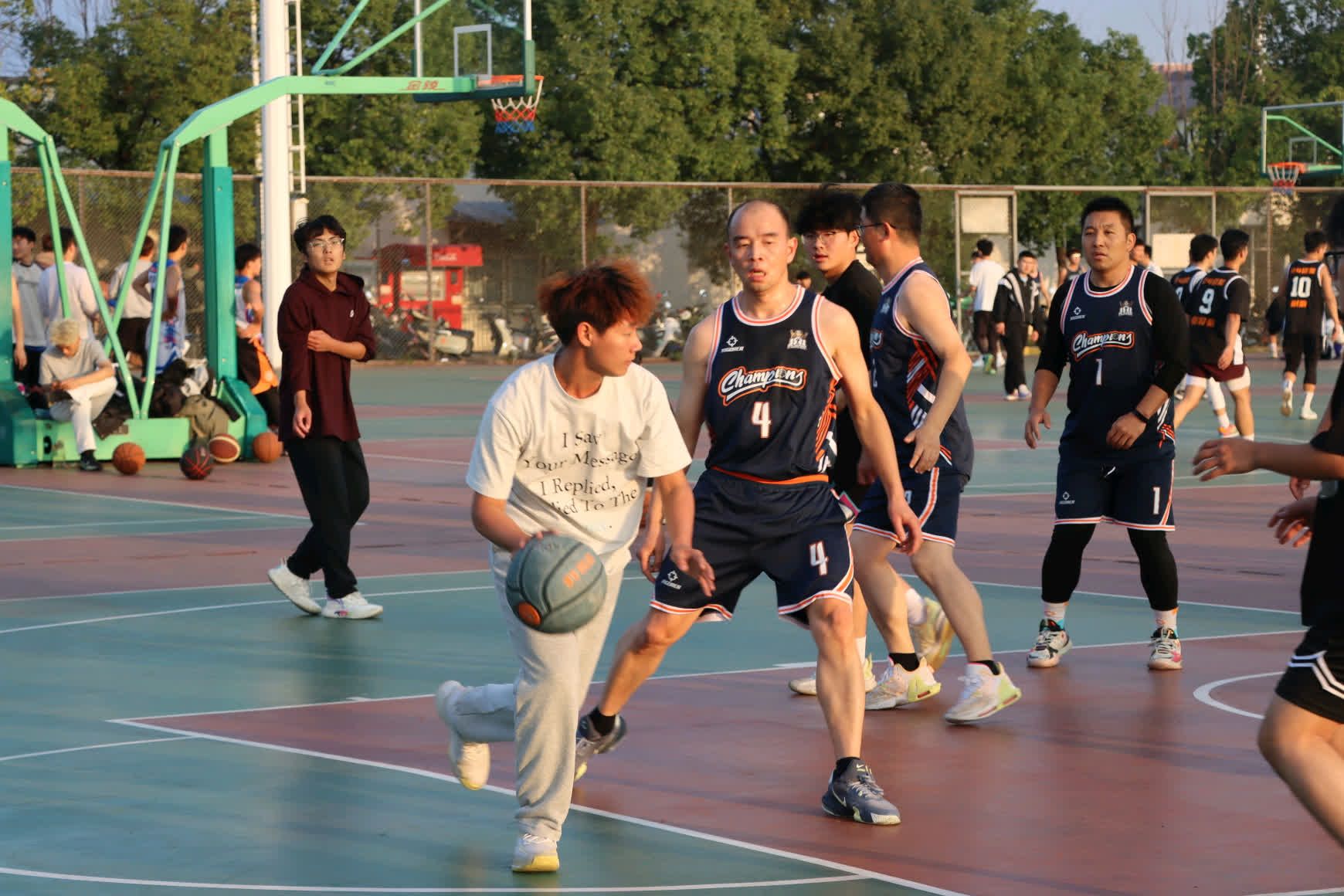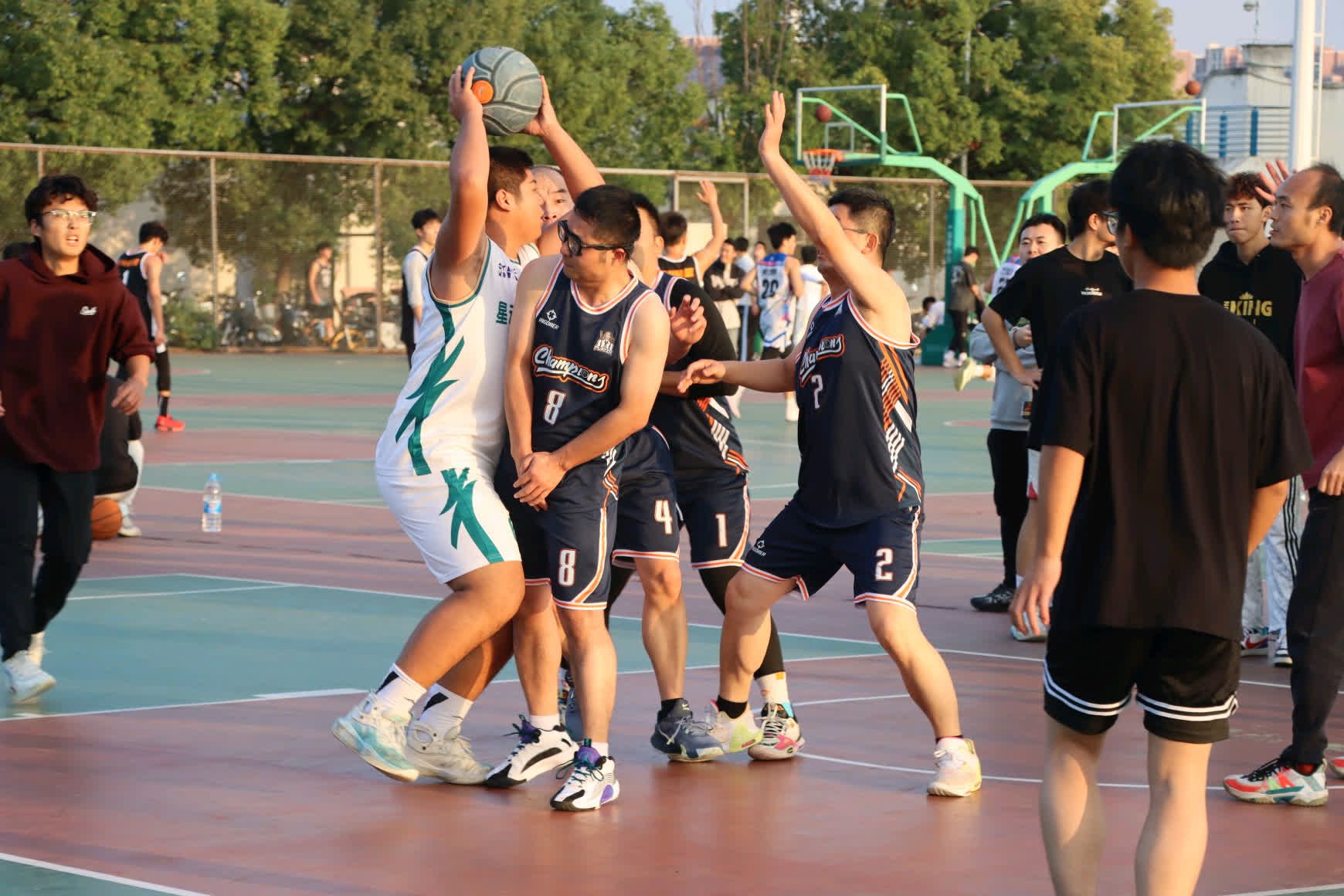 师生篮球友谊赛在南侧体育场火热开赛。