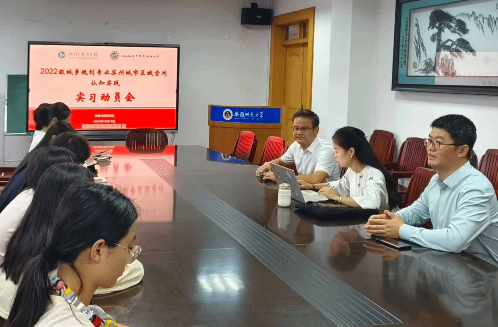 行政楼三楼会议室召开2022级城乡规划城市空间特色认知实践动员会,学院党委副书记付勇、城乡规划专业主任韩会然、城乡规划专业教师姚景艳以及2022级城乡规划专业全体学生参会,会议由姚景艳主持。