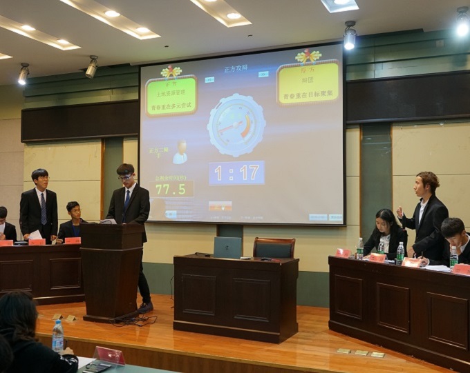 2018级新生辩论赛决赛于学院实验楼101教室成功举行。此次辩论赛邀请18级新生辅导员陈祥云,辩论协会代理会长解维、辩论队队长昂晓陆,院学生会实践部部长代雅馨担任评委,礼仪队王颖担任主席。正方土地资源管理专业代表队、反方辩论协会代表队就“青春重在目标尝试还是多元聚集”辩题展开精彩辩论。