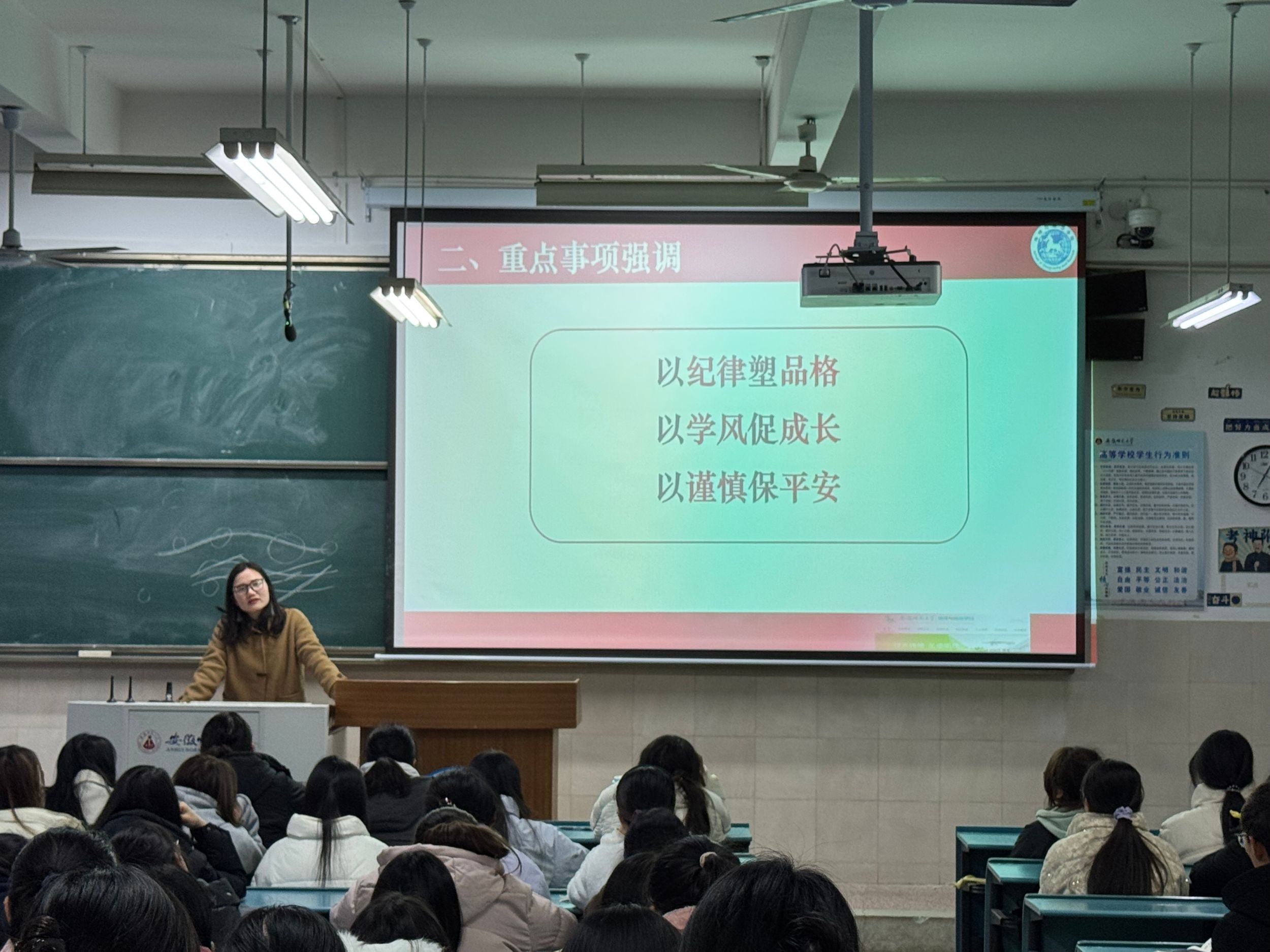 学风建设是学业进步的关键。韦银艳鼓励同学们按时上课,不迟到不早退,课堂上全神贯注,积极参与互动,把握每一次知识汲取的机会。同时,引导同学们做好自我规划,无论是短期的学业小目标,还是长期的职业理想,都需提前筹谋,以扎实的学风为成长奠定基础。