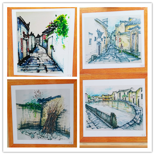 2017级城乡规划学生在二食堂门口举办了宏村写生展,芜湖中铁规划院党委副书记陈龙信、院党委副书记乔静、城规专业负责人杨兴柱教授以及多位专业任课老师、学院辅导员在班级同学的陪同下参观并指导了画展,学校各年级专业的学生前来观摩。56幅作品,传达着学生们不同的风格,展现了班级昂扬的风采。