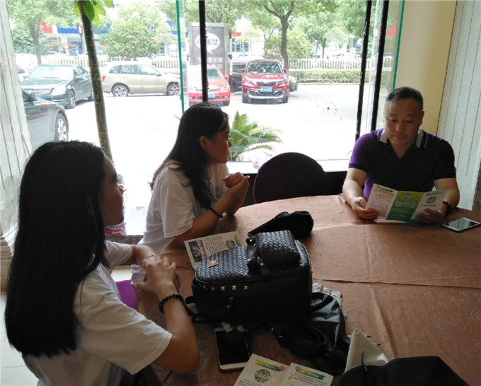 企业组组长陈卉与队员一起在芜湖周边的餐馆酒店进行走访,郭经理热情的接待了三名队员,他仔细的听队长陈卉介绍了团队的项目。