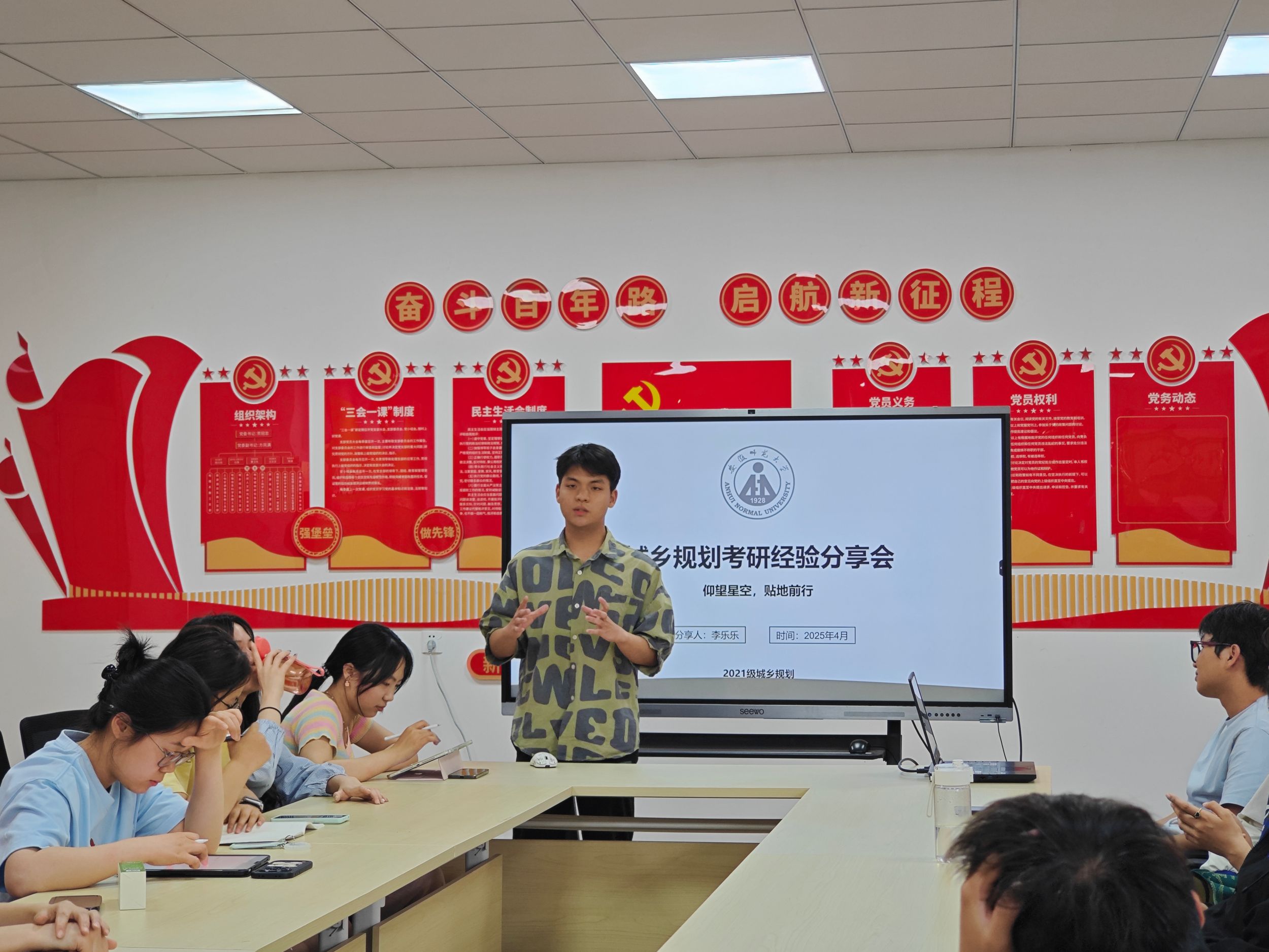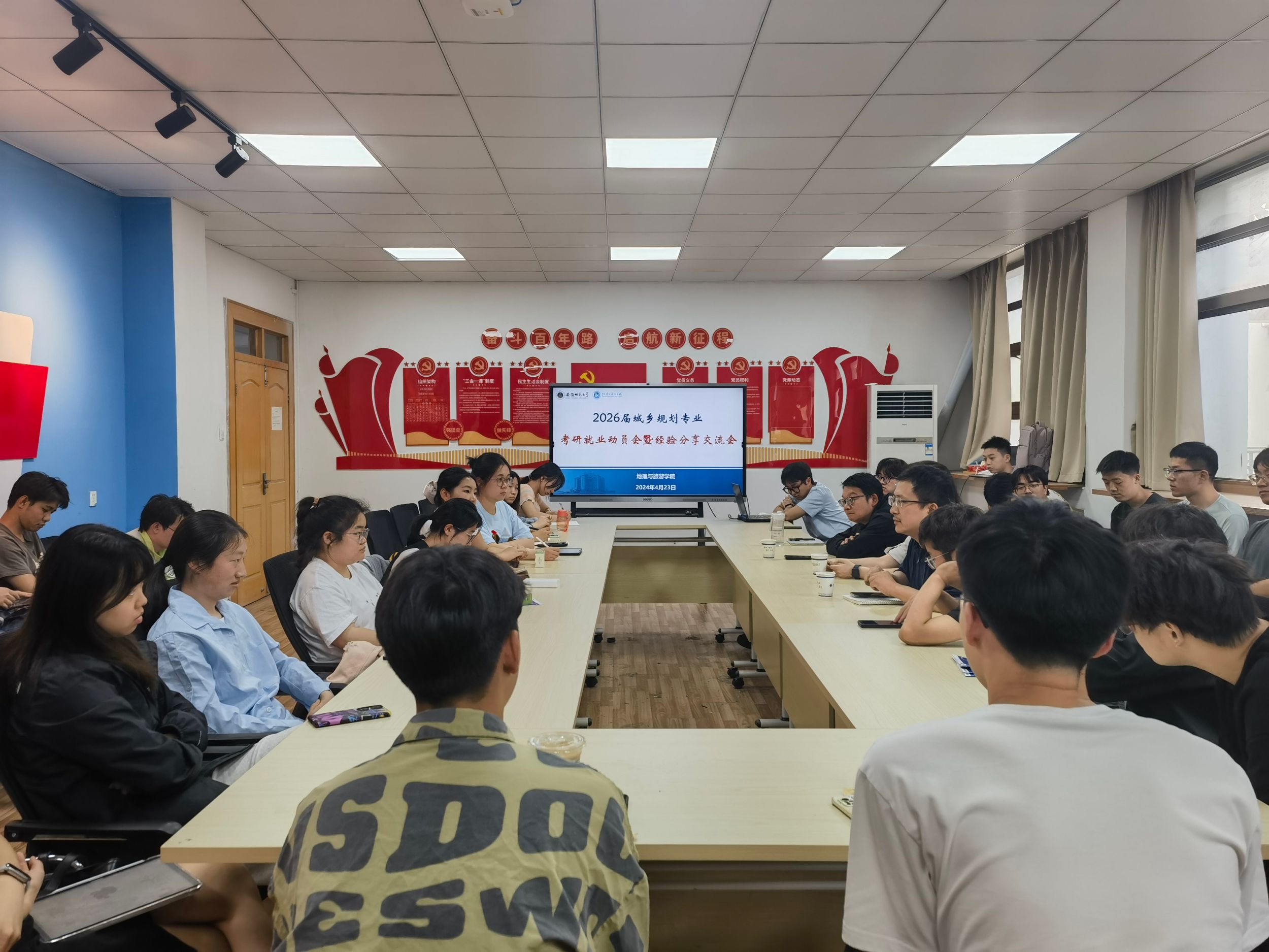 在行政楼二楼学生活动中心召开第十期“学·思·享”大讲堂——2026届城乡规划专业考研就业动员会暨经验分享交流会。本次分享会由辅导员操晶晶主持,城乡规划专业教师王原、包善驹、金莹莹、黄秋实及2026届城乡规划专业全体同学参与。本次分享会旨在深化学生对专业领域的认识,帮助学生降低升学、就业焦虑,明确未来的发展路径。