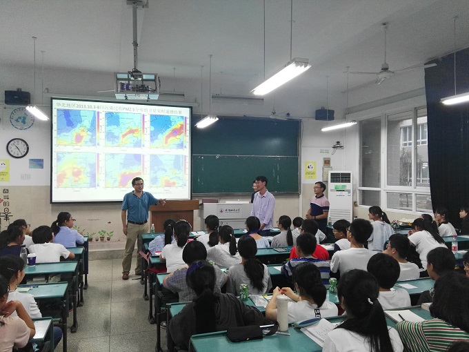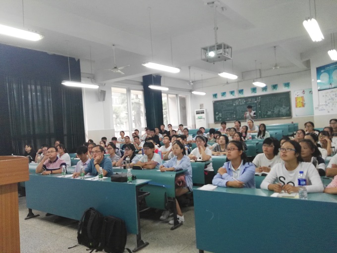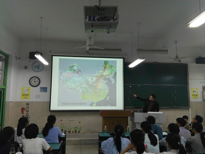 李正强教授以《卫星环境遥感及其应用》为主题,为同学们全面展示了遥感的魅力。李教授在报告中向同学们介绍了遥感应用过程包括遥感数据采集,数据预处理,信息提取,空间分析以及决策决意。李教授指出遥感应用领域有四个类别:测量、分类、估算、目标识别。我国卫星遥感应用范围更是十分广泛,贯穿了城市遥感、气象遥感、农业遥感、海洋遥感、测绘遥感、交通遥感等多个领域。报告中,李正强教授说到遥感技术正趋向于高空间分辨率,高辐射分辨率,高光谱分辨率,高时间分辨率,高几何精度,高机动能力,长寿命以及其它发展趋势。为了让大一新生同学增强对地理信息科学的兴趣,李教授列举了遥感在气象、国土、农业、灾害和环境五个方面应用的实例。整场报告图文并茂,内容丰富,语言生动。报告最后,李正强教授送给全体地理信息科学大一新生四句箴言:“学科前沿,国家需求,广阔天地,大有可为”,着实给了地信新生一剂强心针!