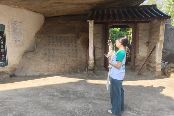 在枞阳县枞阳镇,队员们在镇文化站工作人员的带领下来到大青山,逐处勘查大青山石屋寺摩崖石刻。面对石屋寺上的摩崖石刻,队员们分多角度对其拍摄,对照地方志考证年代,生怕遗漏任何历史信息。“这些石刻不仅是风景,更是枞阳文化的基因密码。”负责文字记录的队员一边快速敲击键盘,一边向石屋寺的僧人请教民间传说,力求对资源单体信息的完整细致记录。