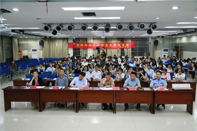 禁毒辩论赛决赛在大学生活动中心二楼团委多功能厅如期举行。本次活动在芜湖市禁毒办的支持下,由校团委主办,校辩论协会和国旅学院学生会联合承办。芜湖市禁毒办常务副主任、市公安局禁毒支队支队长秦建文,市禁毒办副调研员何松新,市禁毒办副主任、市公安局禁毒支队副支队长方曦,市禁毒办副主任赵期发,芜湖市弋江区禁毒办干警王东生,校团委副书记张园园担任大赛评委。通过初赛、复赛,经管学院代表队和教科院代表队成功晋级决赛。
