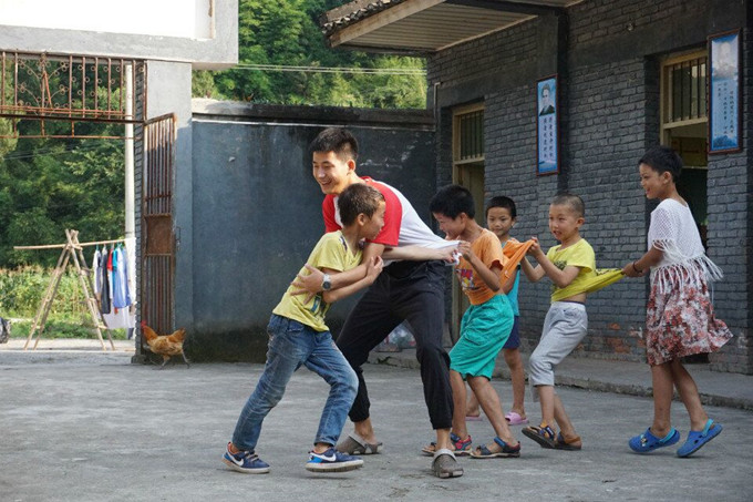 一场游戏,牵动你我的心。为了更好地和孩子们熟悉起来,消除陌生感,队员们带着孩子做了一场破冰游戏——圆圈抱团游戏,由队员们和孩子们手拉手围成一个圆圈,按照顺逆时针的方向走动起来,然后根据数字口令迅速抱团,落单的人要接受“惩罚”,即表演节目。“太阳当空照,花儿对我笑……”《上学歌》《青春修炼手册》、太极拳表演,花样风格的才艺表演令孩子们捧腹大笑。