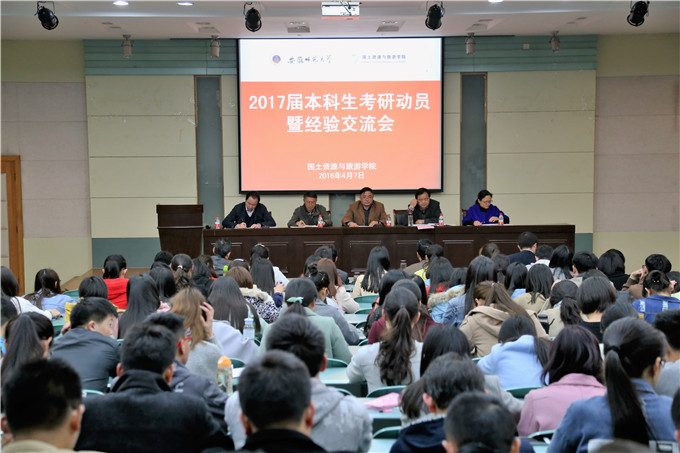 会上,乔静首先介绍了学院2016届各专业学生考研、保研推免情况。随后,院长苏勤、副院长王朝辉、方凤满代表学院做动员讲话,他们深入分析了当前全国考研形势和考研政策,鼓励同学们认真准备考研,制定切实可行的考研计划,在艰辛而又充实的考研之路上实现人生价值。最后,院党委书记贾冠忠对同学们提出了殷切希望,要求大家在未来考研的道路上坚定目标、明确任务、保持信心,既要仰望星空志存高远,更要脚踏实地捕捉梦想,做善于抓住机遇的考研有心人,并祝全体同学考研成功。