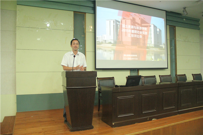 部 王宁)德才兼备聚青年力量,知行合一展青春风采。9月12日上午,国旅学院2015年暑期社会实践评比汇报会在院实验楼101教室成功举行。院党委副书记乔静,全体专兼职辅导员出席了评比会并担任评委。全院共有17支代表队参加了本次汇报评比会。